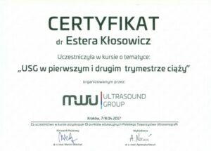 Dr n. med. Estera Kłosowicz – specjalista z położnictwa i ginekologii.