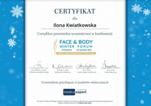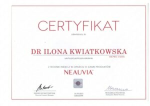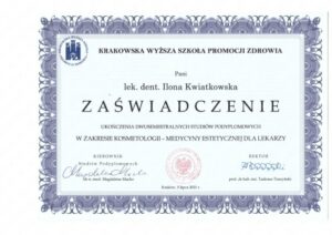 Lek. Ilona Kwiatkowska jest absolwentką kierunku lekarsko-dentystycznego Collegium Medicum Uniwersytetu Jagiellońskiego. Ukończyła studia podyplomowe z zakresu medycyny estetycznej dla lekarzy.