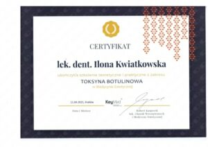 Lek. stom. Ilona Kwiatkowska ma bogate kompetencje i doświadczenie w zakresie zabiegów medycyny estetycznej.