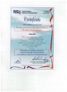 Absolwentka Wydziału Lekarskiego Uniwersytetu Jagiellońskiego Collegium Medicum w Krakowie. Szkolenie specjalizacyjne odbywała w Oddziale Ginekologii i Ginekologii Onkologicznej Szpitala Uniwersyteckiego w Krakowie. Aktualnie pracuje jako starszy asystent w Breast Cancer Unit przy ul. Kopernika 50 gdzie zajmuje się diagnostyką i leczeniem chorób piersi.