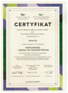 Bierze czynny udział w licznych konferencjach i szkoleniach oraz pomaga w ich organizacji, dzięki czemu stale podnosi swoje kwalifikacje.