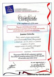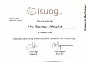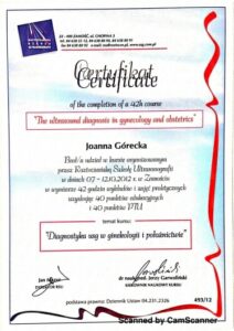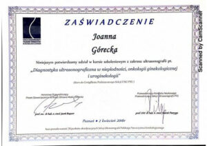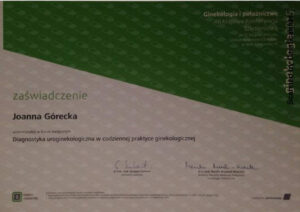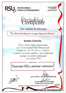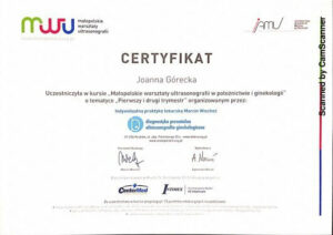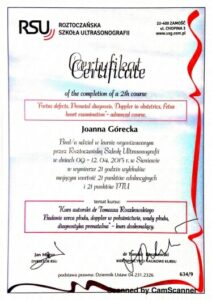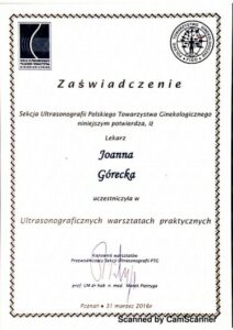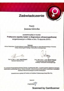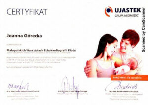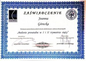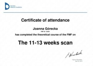 Ukończyła liczne certyfikowane kursy i szkolenia w zakresie diagnostyki USG 3D/4D I oraz II trymestru ciąży, diagnostyki serca płodu oraz wad wrodzonych macicy. Specjalizuje się w badaniach prenatalnych wszystkich trymestrów ciąży.