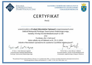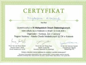 - 2011r. – do chwili obecnej Szpital Uniwersytecki w Krakowie Oddział Chorób Metabolicznych i Diabetologii oraz Poradnia Diabetologiczna