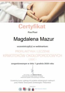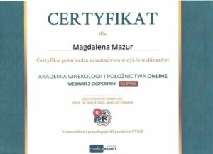 Lek. Magdalena Mazur-Miska – w trakcie specjalizacji z ginekologii i położnictwa.